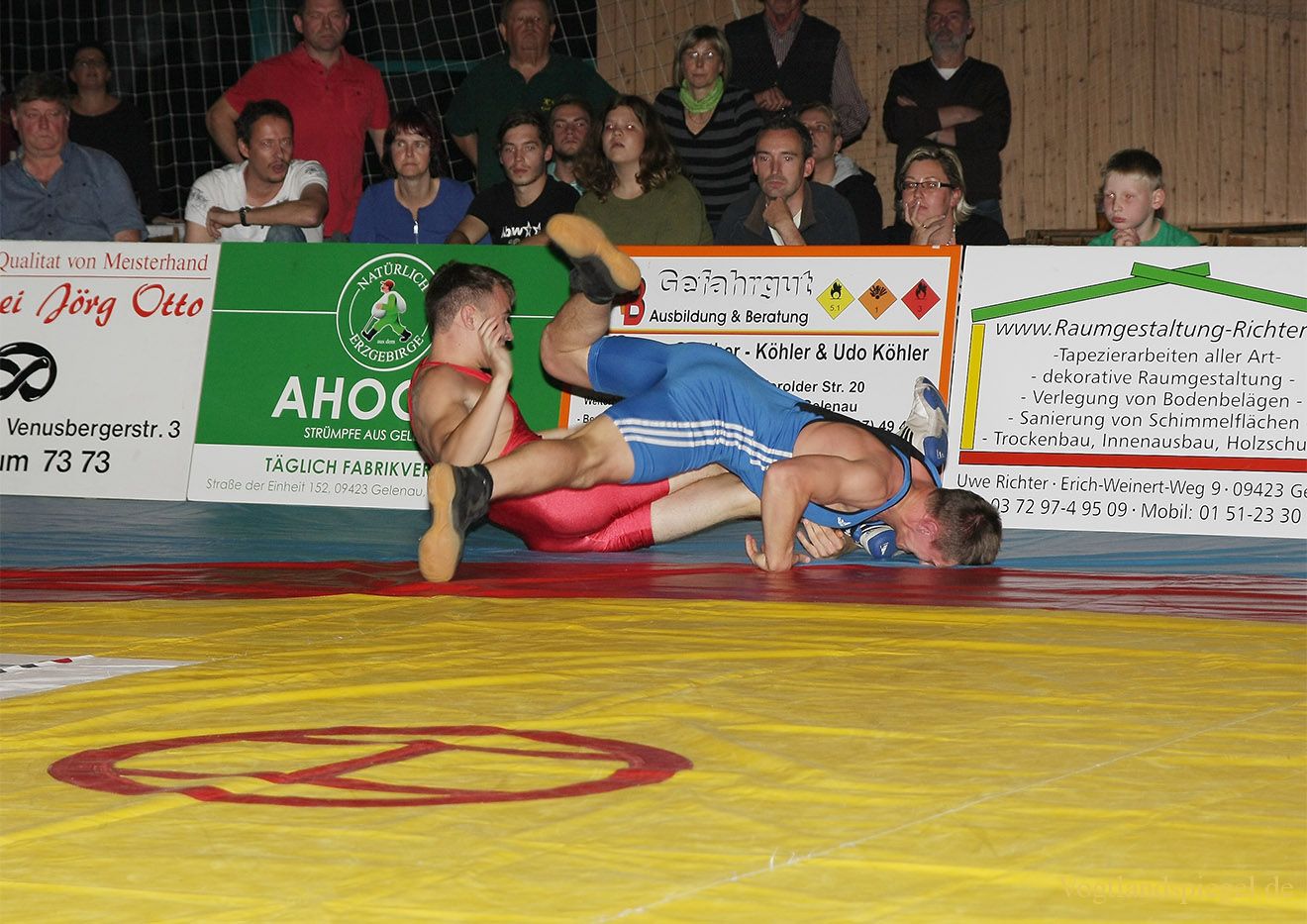 66kg A Freistil: Henry Hofmann, RSK Gelenau gegen Radoslaw Kisiel (blaues Trikot), RSV Rotation Greiz 0:4-TÜ 2:18-02:21