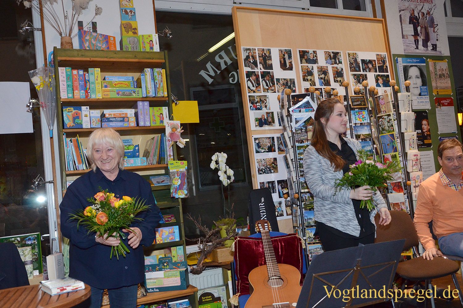 Carmen-Maja Antoni (l.) und Jana Hellfritzsch erhalten zum Schluss einen Blumenstrauß.