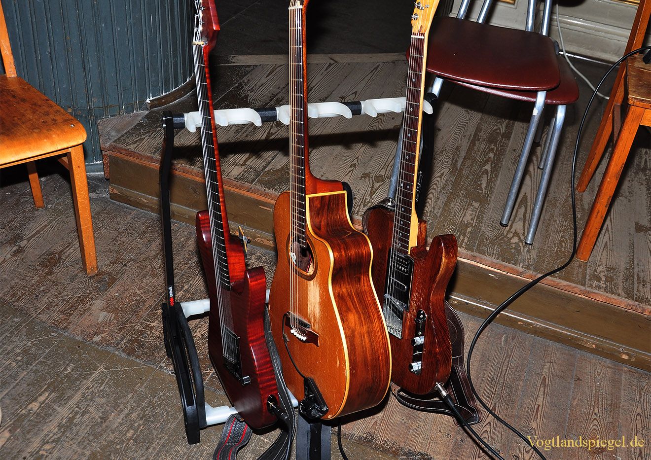 Die Gitarren von Wolfgang Schmiedt stehen bereits griffbereit auf der Empore.
