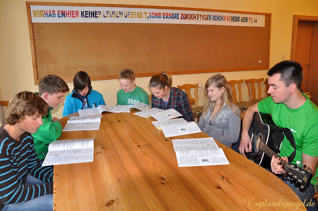 Seit September 2013 ist Christian Mende neuer Greizer Jugendwart der Evangelisch-Lutherischen Kirchgemeinde. „Heavens Gate“ singt er hier mit den Konfirmanten.