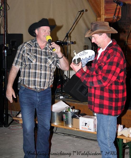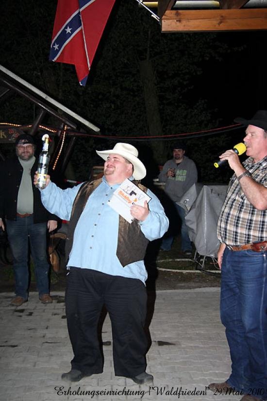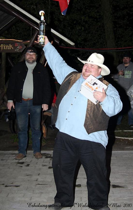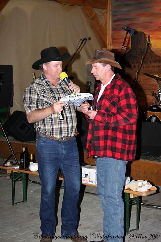 Viele kennen sich schon aus tiefsten DDR-Zeiten – halten immer noch zusammen. „Es ist vor allem auch die Liebe zur Countrymusic, die uns eint“, befindet Thommy Wolf. So kamen auch die Freunde der Western-und Countrymusik voll auf ihre Kosten. Ein Konzert der amerikanischen Band „Modern Earl sorgte für das entsprechende Western-Feeling auf dem riesigen Areal der Einrichtung. Bereits am Nachmittag zog es zahlreiche Interessierte, darunter auch viele Familien mit Kindern, zum Festprogramm. Hufeisenwerfen, Ponyreiten, Kutschfahrten und Zuckerwatte erfreuten die Kleinsten, während sich die Mütter beim Square Dance und die Väter beim Kampf um den Titel „Mountain-Man“ versuchen konnten. Baumstammschleppen, Axtwerfen, Bogenschießen und mal eben schnell mit dem Kanu zur Insel paddeln, gehörten zu den Kriterien um den begehren Titel, den schließlich Daniel Lüder aus Plauen erringen konnte.