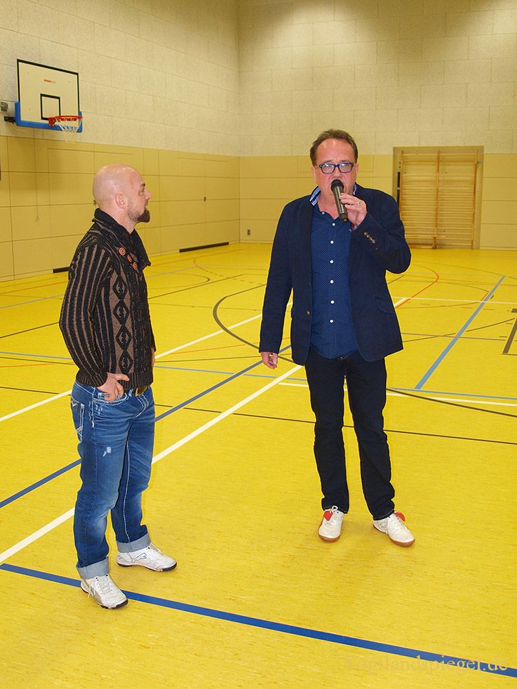 Der Stifter des Wanderpokals, Michael Czerwenka (r.) und Fußballstar Skerdilaid Curri zur Eröffnung des Turniers.