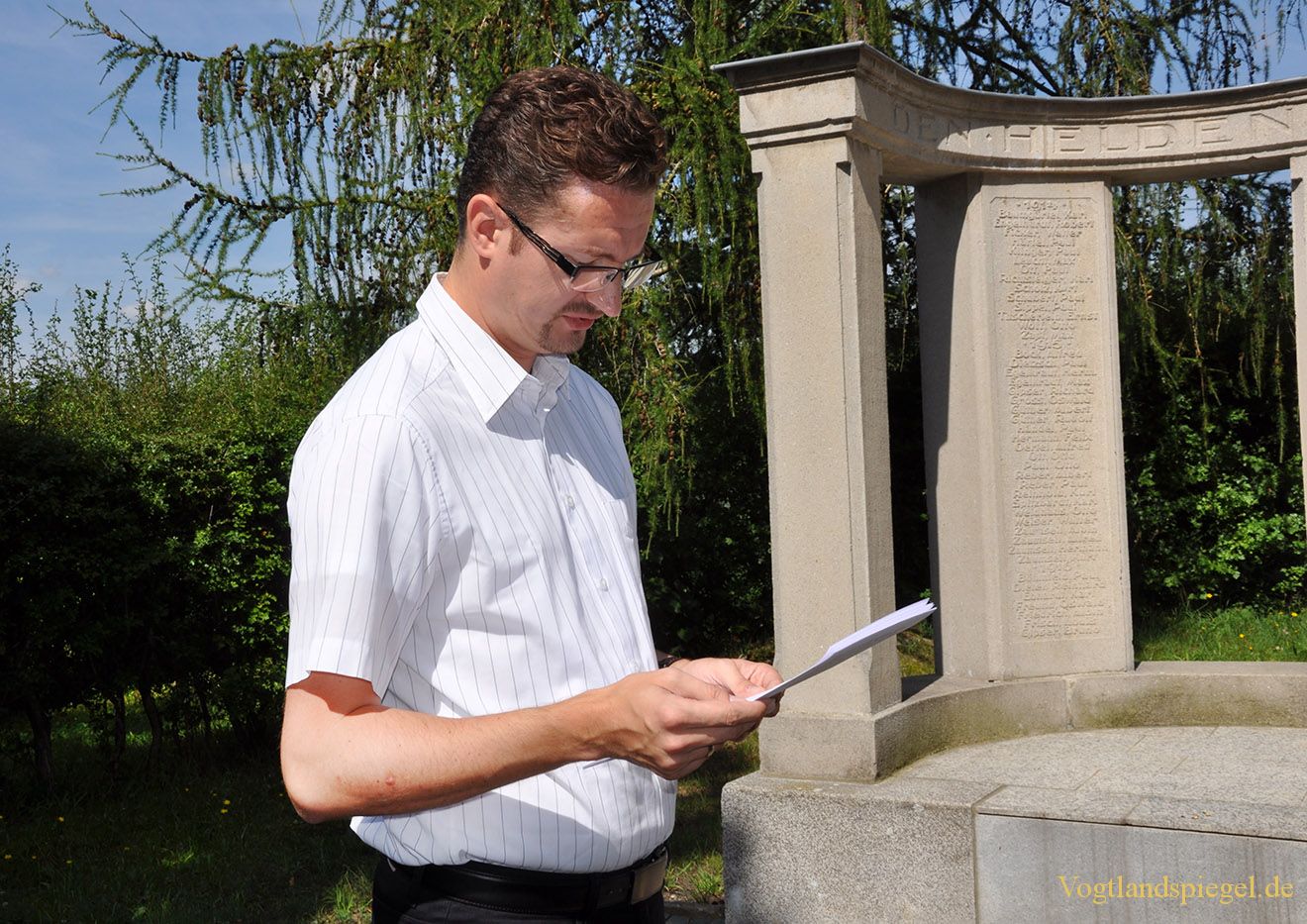 Der Vorsitzende der CDU-Fraktion im Greizer Stadtrat, Christian Tischner verlist ein Gedicht.