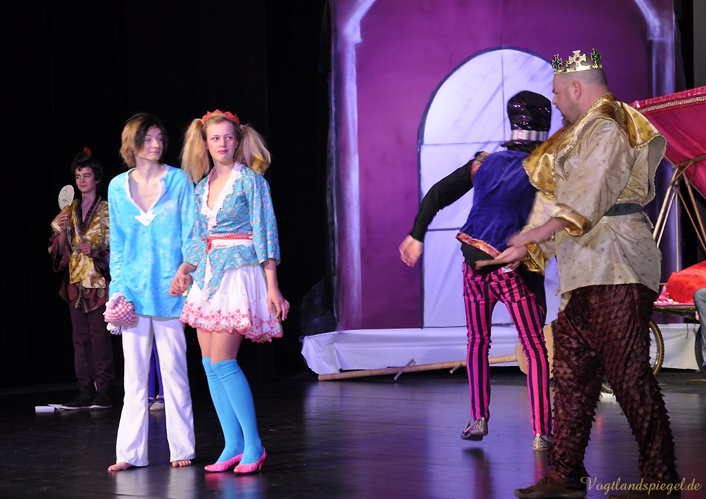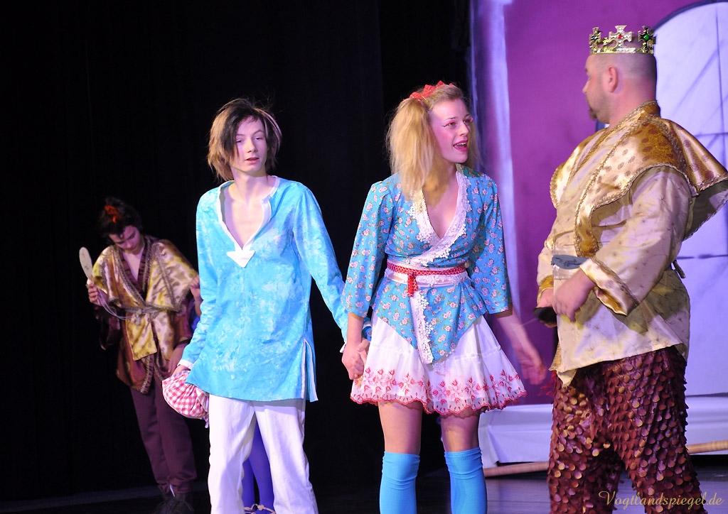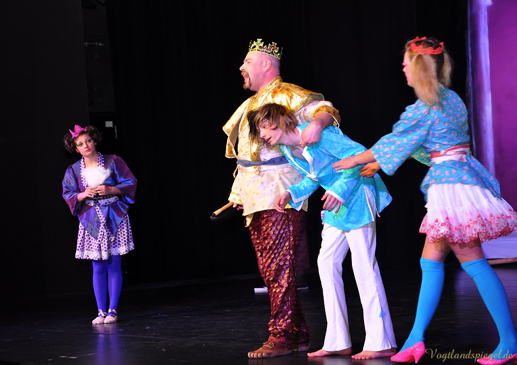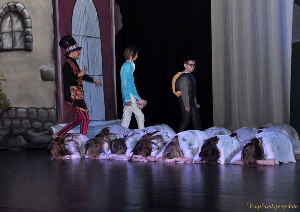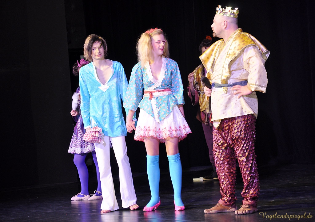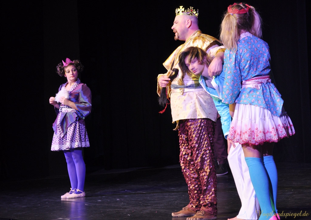 GREIZ. Wenn man ein Glückskind mit einem Muttermal in Form eines vierblättrigen Kleeblatts auf der Schulter ist, hat man dann immer Glück im Leben? Eine Antwort darauf kann man im diesjährigen Weihnachtsmärchen des Spontantheaters Hartmann Der Teufel mit den drei goldenen Haaren erfahren, das am Dienstagvormittag in der Vogtlandhalle seine umjubelte Premiere erlebte.
