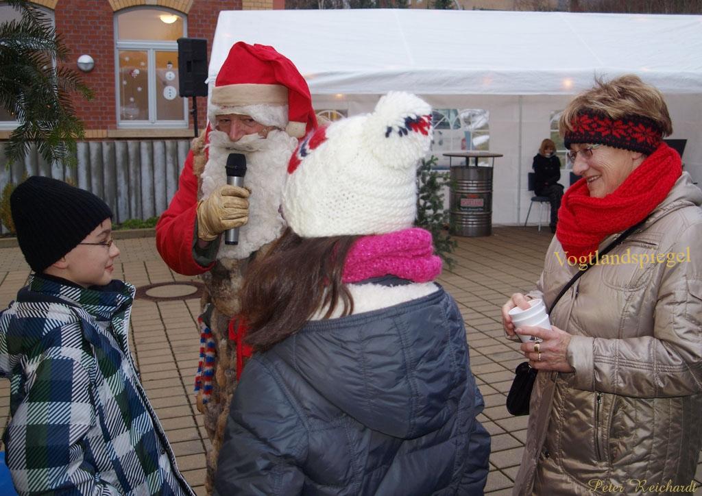 GREIZ-DÖHLAU. Schwedenfeuer begrüßten die Besucher, der Duft von Glühwein, von weihnachtlichen Spezereien und den leckeren Dingen auf dem Grill lag über dem Platz am Bürgerzentrum in Greiz-Dölau und über alles strahlte der Weihnachtsbaum mit seinen vielen Lichtern – so erlebten die Einwohner aus dem Greizer Süden und die Besucher den 2. Dölauer Weihnachtsmarkt das vergangene Wochenende. Der vierte Advent hatte viele an das Bürgerzentrum Greiz-Dölau gelockt, wo der Ortschaftsrat Dölau/Sachswitz/Rothental und die TT-Freunde Greiz e.V. die Gäste herzlich begrüßten und ihnen einige vergnügliche Stunden wünschten. Klein aber Fein – so präsentierte sich der Dölauer Weihnachtsmarkt. Für die Kinder waren es natürlich die Eisenbahnmodellanlagen, die sie magisch anzogen. Es war schon erstaunlich, was da auf so kleiner Fläche untergebracht war und durch die aufgebaute Minilandschaft fuhr. Der ICE war dabei, genauso wie Güterzüge und nostalgische Personenzüge. Ja, um den Weihnachtsbaum schnaufte eine Gartenbahn auf den dort liegenden Gleisen. Selbst die Frage, wie eine solche Anlage entsteht, wurde vor Ort beantwortet, hatten doch die TT-Freunde eine im Aufbau befindliche mitgebracht und werkelten fleißig daran. Man fühlte sich heimelig, und das nicht nur in den Räumen des Bürgerzentrum Greiz-Dölau, sondern auch zwischen den weihnachtlich geschmückten Verkaufs- und Ausstellungsständen vor dem Bürgerzentrum. Da hatten die Vogtlandwerkstätten ihr Angebot mit Pantoffeln, Vogelhäusern, den unterschiedlichsten Holzwaren, Gartenlaternen und Kerzen aufgebaut, die Firma Garten- und Landschaftsbau Breitzke ein breites Angebot an wunderschönen Mineralien, aber auch Informationen zum Leistungsangebot der Firma aus erster Hand parat. Hausschlachtenes und landwirtschaftliche Erzeugnisse direkt vom Erzeuger, dem Landwirtschaftsunternehmen Brand, aber auch eine leckere Kürbissuppe, die richtig durchwärmte – solch ein Hofladen hat schon was! Weihnachtliche Accessoires, kleine Gestecke zum Jahreswechsel, auch der Sachswitzer Blumenhändler wartete mit seinem Angebot auf. Interessant, was man am Informationsstand des Vereins zur Erhaltung des Rittergutes Kleingera e.V. über dieses Gebäude und seine Geschichte erfahren konnte. Ein rühriger Verein, der seinen Veranstaltungsplan für das Jahr 2013 mitgebracht hatte und darüber informierte. Ein Zeltdach schütze vor dem doch durchwachsenen Wetter, so dass man zusammen saß, bei Glühwein und Spezialitäten vom Grill miteinander sprach, sich an diese oder jene Begebenheit aus der Vergangenheit erinnerten und damit das Miteinander im Greizer Süden pflegte. Als dann auch noch der Weihnachtsmann dem Dölauer Weihnachtsmarkt seinen Besuch abstattete, da war das Hallo bei den Kindern besonders groß, wenn auch einigen ganz schön der Frack flatterte. Ein liebevoll gestaltetes weihnachtliches Ambiente am Bürgerzentrum Greiz-Dölau, dazu bunte Verkaufsstände mit viel Phantasie gestaltet und Schwedenfeuer, die Wärme spendeten – ein Weihnachtsmarkt, heimelig und gemütlich, so zeigte sich der Dölauer Weihnachtsmarkt und stimmte damit alle Besucher besinnlich auf das Weihnachtsfest ein. Über allem strahlte der von Dölauer Einwohnern gespendete Weihnachtsbaum mit seinen Lichtern und verkündete die frohe Weihnachtsbotschaft.