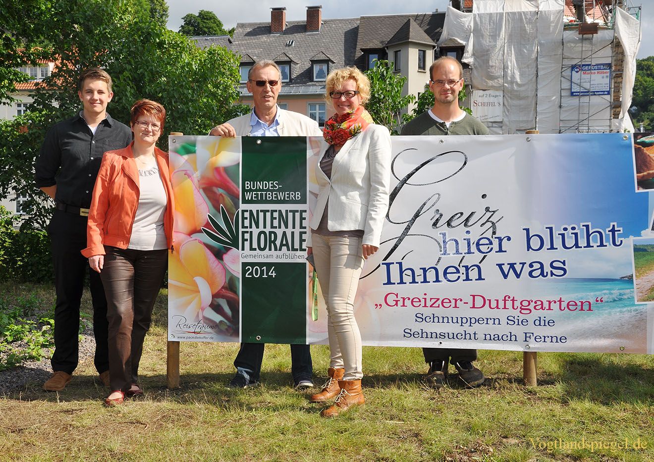 Im Rahmen des Bundeswettbewerbes „Entente Florale“ beauftragte das Reisebüro „Reiseträume“ die Firma Gala Matzke mit dem Erneuern der Freifläche an der Friedensbrücke. v.l. Florian Schulze, Kerstin Guttchen, Andreas Kistner, Yvonne Trommer und André Matzke.