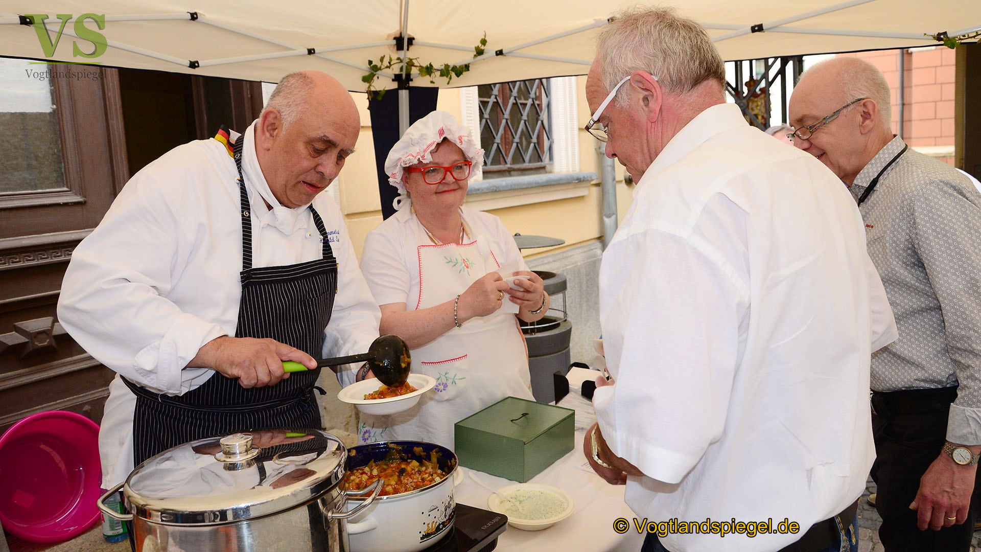 Am Abend kredenzen Küchenmeister Harald Saul und das Greizer Koch-und Backmädel Heidi Körner die Lieblingssuppe des letzten regierenden Fürsten, Heinrich XXII. Reuß Ältere Linie.