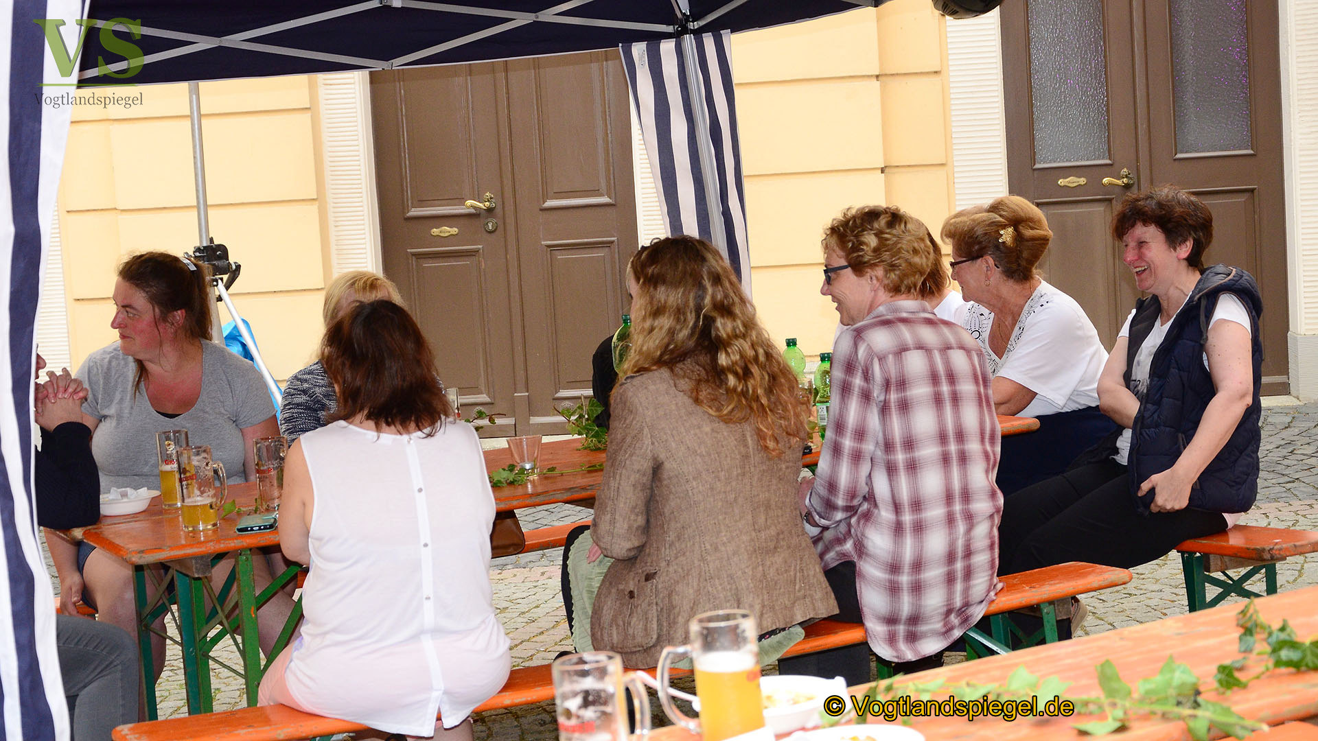 Gemütliches Beieinandersitzen im Schlosshof.