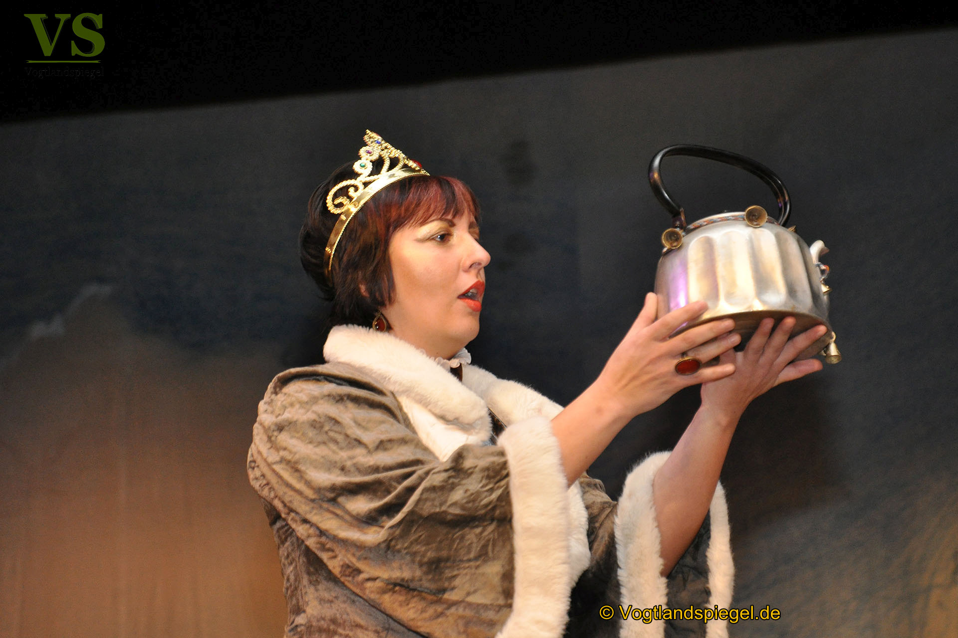 Die Königin (Silke Mothes) betrachtet den Glöckchenkessel