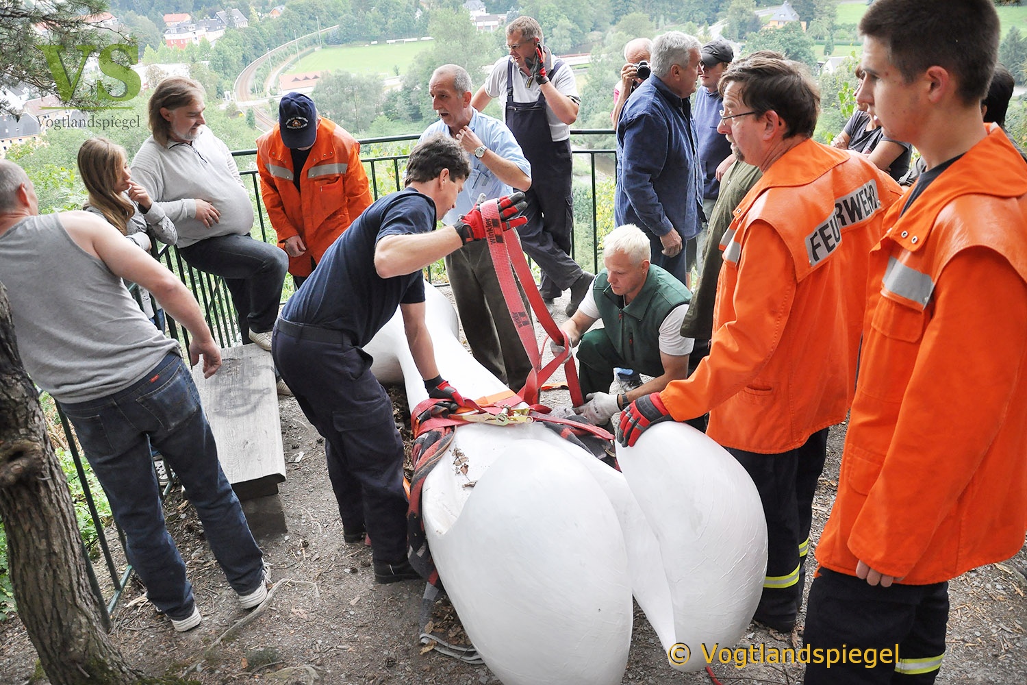Nun muss die Statue noch aufgerichtet werden