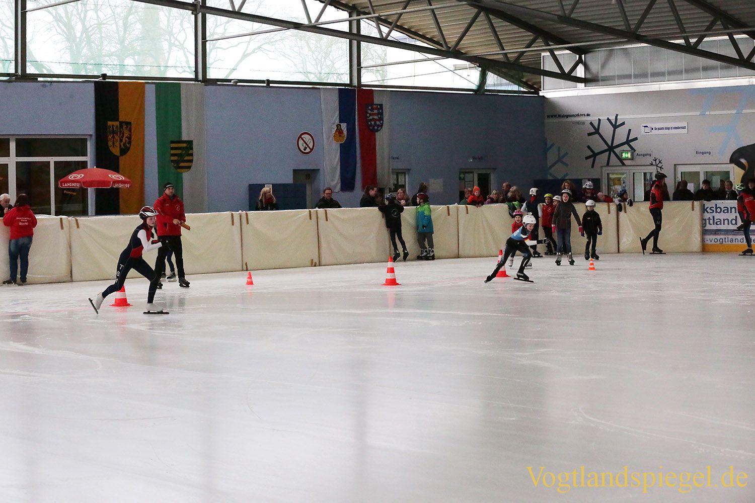 Die Wettkämpfe im Eisschnelllauf auf der Eissportfläche der Stadt Greiz beginnen.