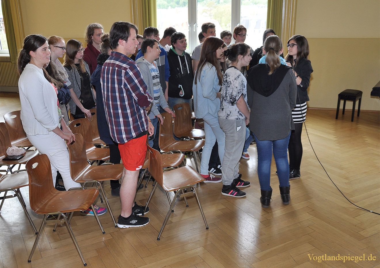 Nun rücken die Schüler näher ans Mikro.