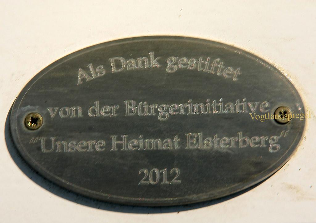 Stifterplakette der Parkbank, die die BI Elsterberg sponserte.