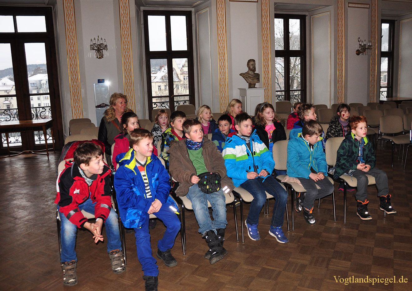 Im Weißen Saal des Unteren Schlosses Greiz haben die Elsterberger Hortkinder Platz genommen.