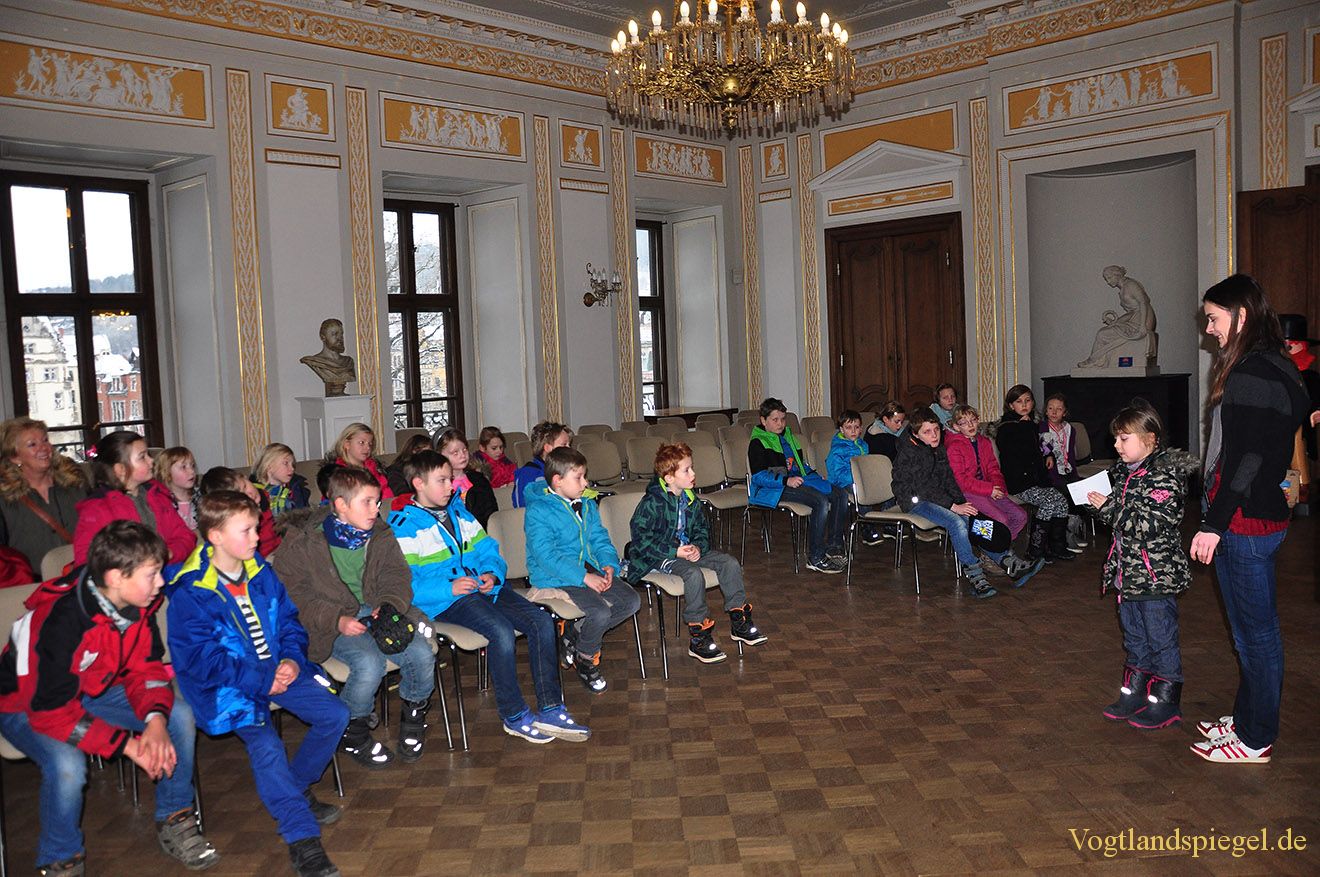 Aufmerksam lauschen die Elsterberger Hortkinder den Ausführungen.