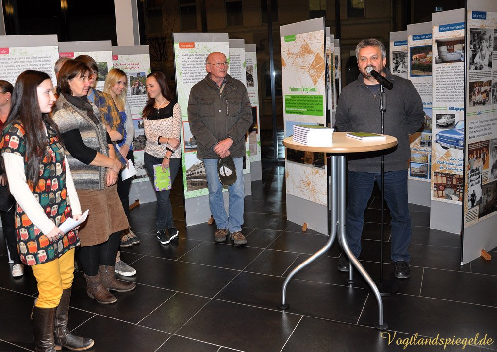 Am Montagabend wurde in der Vogtlandhalle Greiz zum einen der dritte Teil der Wanderausstellung feierlich eröffnet und zum anderen das Buch Grenzüberschreitungen eine Sammlung der besten Forschungsergebnisse der Schüler aus Cheb, Kraslice, Greiz, Mylau und Plauen präsentiert. Die gesamte Ausstellung fasst die Ergebnisse der dreijährigen Schülerforschungen aus Deutschland und der Tschechischen Republik zusammen das Buch Grenzüberschreitungen ist ein etwas anderer Regionalführer, der aus dem Blickwinkel junger Einheimischer beider Staaten durch das tschechisch-sächsisch-thüringische Grenzland führt, wie Ulrich Jugel, Vorsitzender des Vereins Dialog mit Böhmen e.V. einführend sagte. In einem zuvor eingespielten Videoclip gestanden die Jugendlichen, dass ihnen im Vorfeld der Arbeit zu Mylau eigentlich nur Deichmann, zu Reichenbach Mc Donald und zu Kraslice Billige Zigaretten einfielen. Wir konnten uns zu Beginn nicht vorstellen, was da eigentlich passieren wird, gestand Laura Dunse vom Ulf-Merbold-Gymnasium. Nach drei Jahren habe sich die Klischeevorstellung von einzelnen Orten in Deutschland und der Tschechischen Republik grundlegend geändert. Die Forschung gliederte sich in drei Themen, fuhr Laura Dunse fort. Der erste Teil beschäftigte sich mit dem Wandel von Orten, der zweite beleuchtete die Lebensbedingungen in den 1970er und 1980er Jahren und der dritte Teil war dem Funktionswandel der Regionen und Objekte vorbehalten.