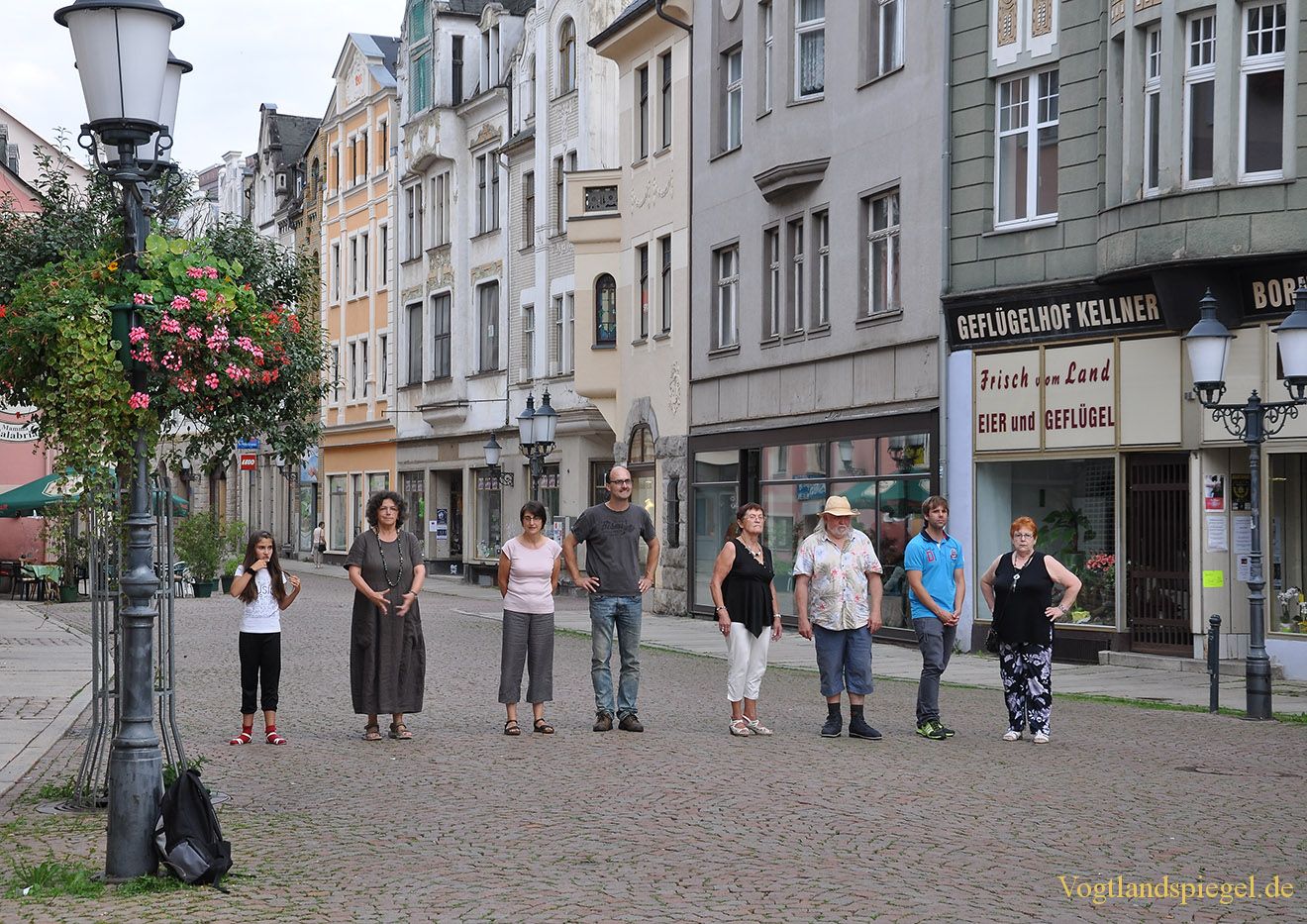 Eröffnungswerkstatt des Theaterherbstes probt auf Greizer Markt