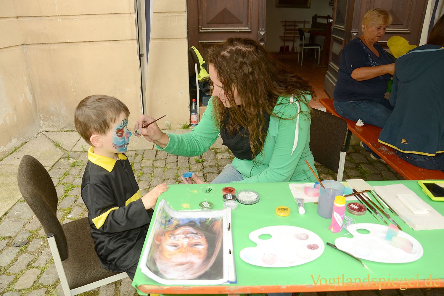 Simone Damm malt den kleinem Leo ein niedliches Gesicht.