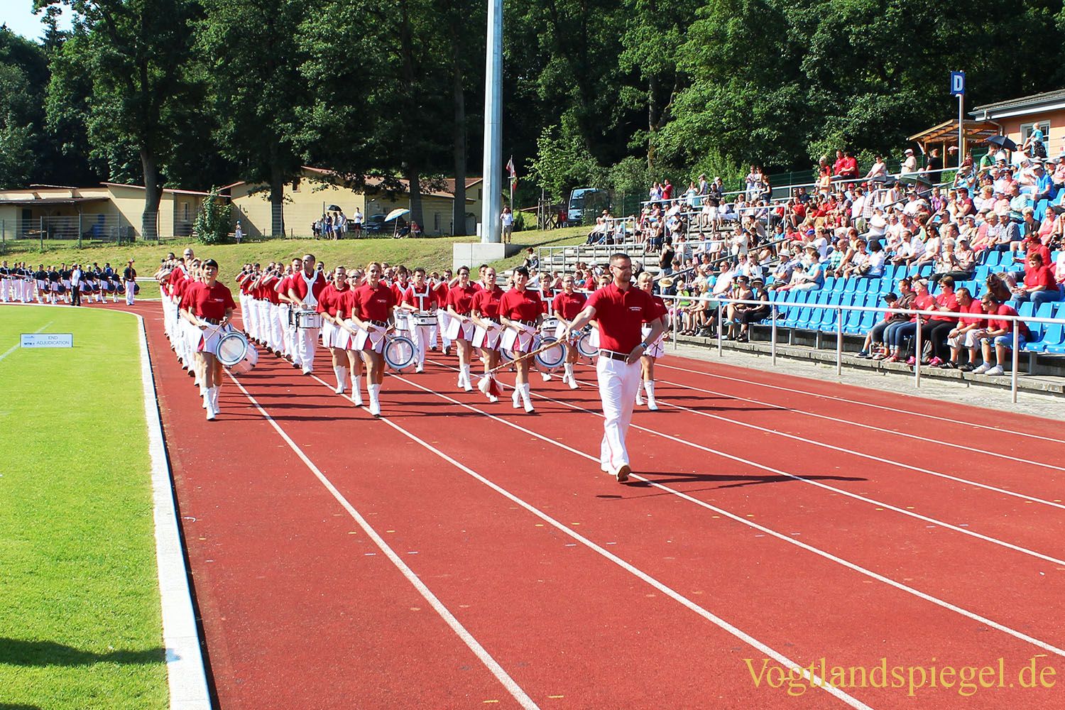 Der Vorjahressieger SG Fanfarenzug Potsdam marschiert als erster ein