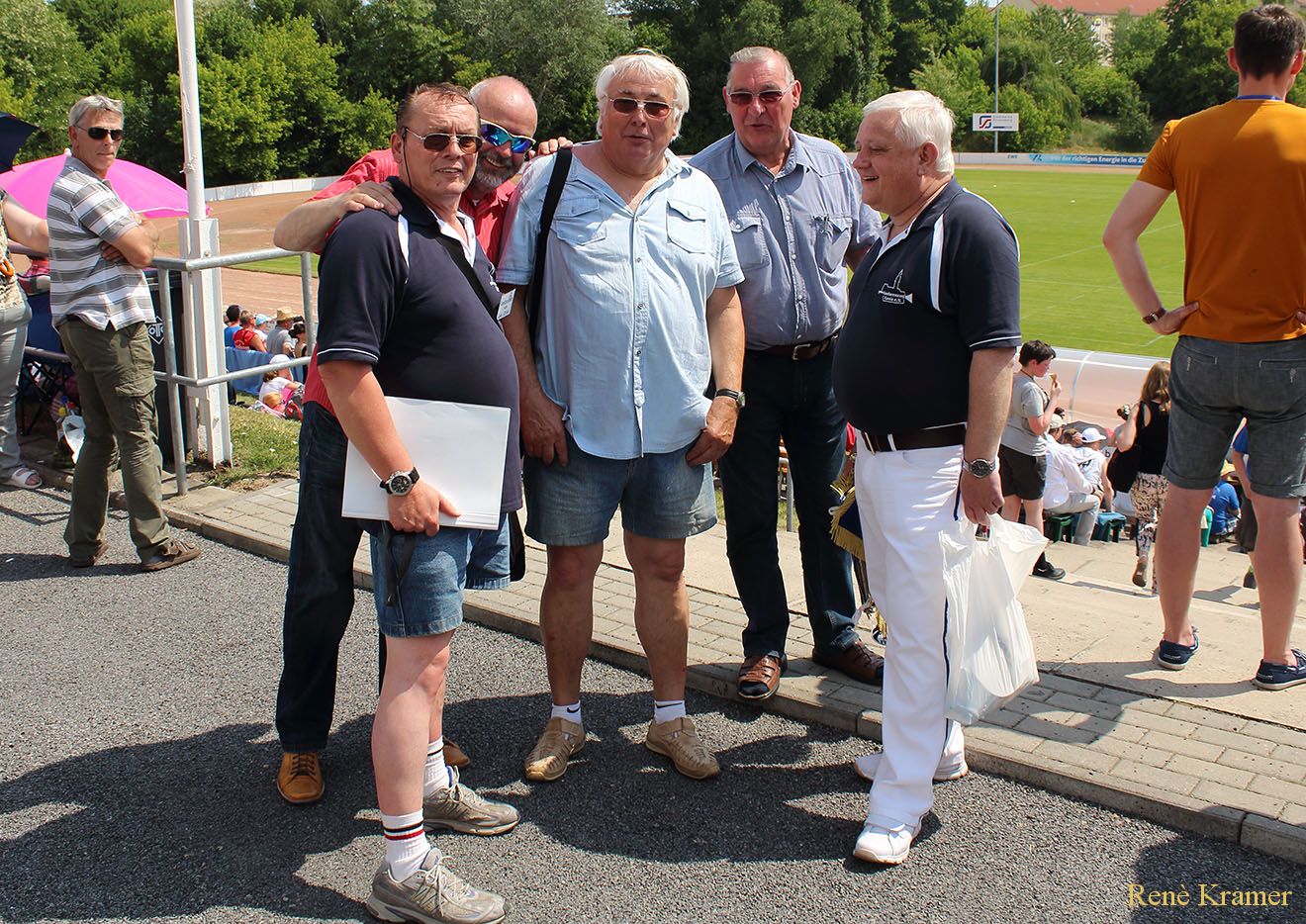 Der Fanfarenzug Greiz e.V. nahm an der Fanfaronade in Strausberg teil und belegte dort einen hervorragenden zweiten Platz. Alte Weggefährten, rechts Bernd Jahn, der Vorsitzende des Fördervereins des Fanfarenzug Greiz e.V.