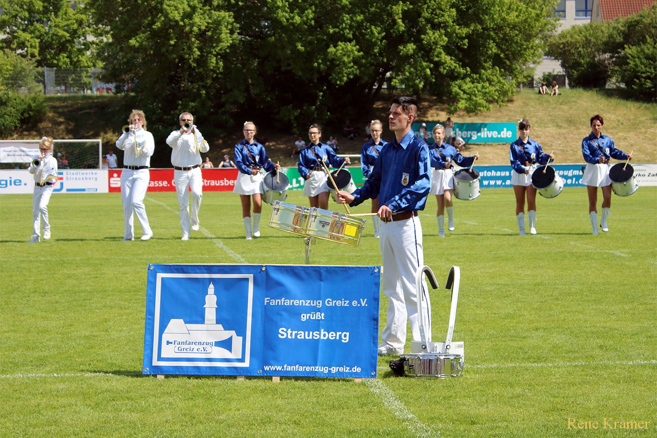 Der Fanfarenzug Greiz e.V. nahm an der Fanfaronade in Strausberg teil und belegte dort einen hervorragenden zweiten Platz. Fanfarenzug Greiz während der Show