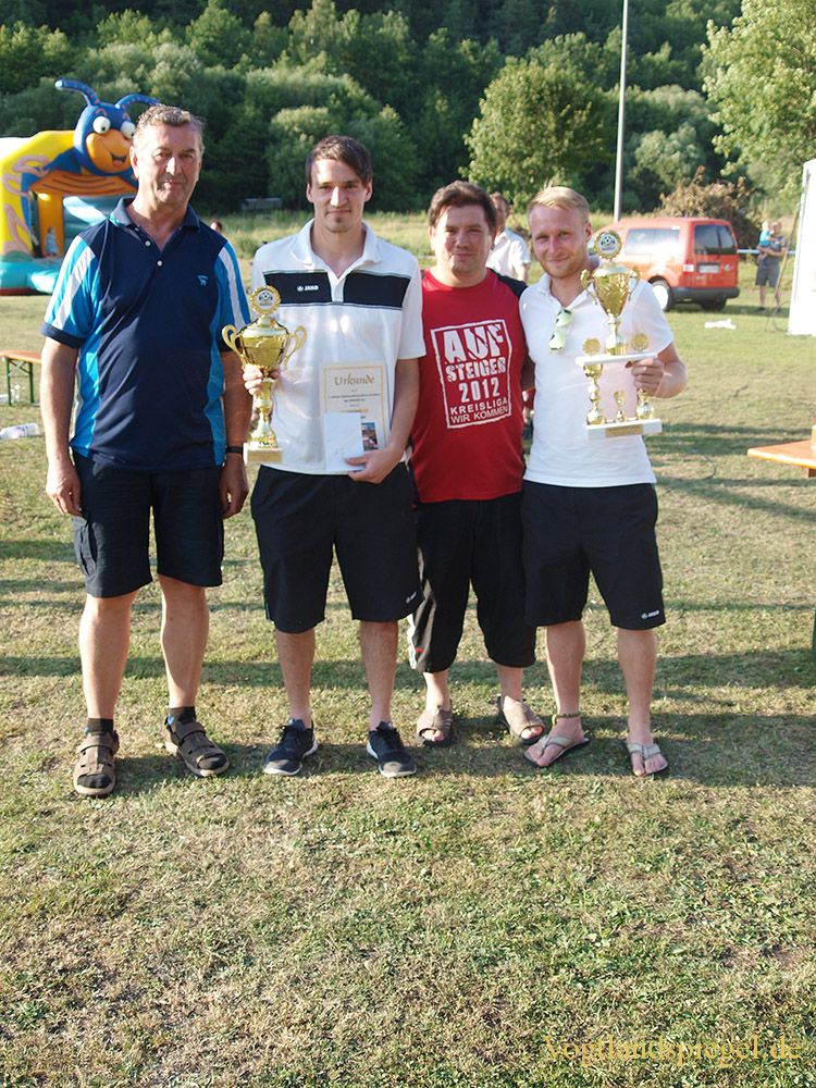 Sponsor Uwe Liebold (2.v.r.) nimmt im Anschluss die Ehrungen vor – hier Jonas Lauber.