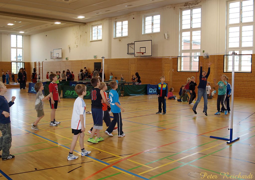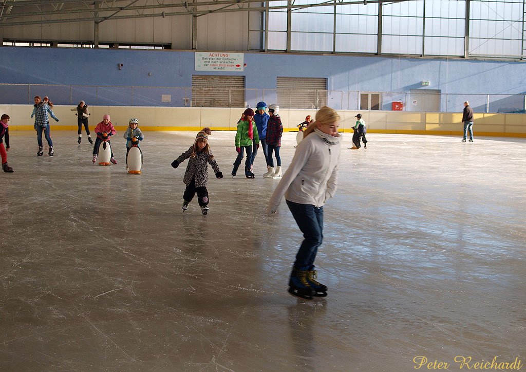 Aber zurück zum Badespaß am vergangenen Mittwoch: Schwimmen, Springen, sich im Wasser austoben und mit anderen gemeinsam etwas in den Herbstferien erleben, das hat schon mächtig viel Spaß gemacht und ließ die letzten Ferientage noch einmal richtig toll werden. Nicht nur, dass man sich in der Greizer Schwimmhalle auspowern konnte, nein, mit dem Schwimmnachweis für das Sportabzeichen wurde auch eine sinnvolle sportliche Betätigung der jungen Leute in das Ferienprogramm eingebunden. Apropos sportliche Betätigung. Das begann ja schon am Dienstag, den 22. Oktober, als sich rund 150 Kinder aus den Schulhorten der Stadt Greiz, aber auch aus eigenem Interesse, auf den Weg in die Greizer Sportschule Kurt Rödel machten und an vielen sportlichen Stationen in der großen Sporthalle ihre Kräfte maßen. Da wurde Hockey, Tischtennis, Federball, Shuffleboard, Basketball, Fußball sowie Ball über die Schnur gespielt und bei einigen lustigen Staffeln die Sieger ermittelt. Natürlich durfte die große Hüpfburg nicht fehlen, wo man auch mal einen Salto probieren konnte. Sportliche Betätigung und Bewegung wurden groß geschrieben. Im Rahmen der Ferienangebote startete die Sozialraum Soccer Tour 2013, über die bereits berichtet wurde. Die Greizer Eisbahn wurde von rund 70 Kindern und Jugendlichen gestürmt, um mit den scharfen Kufen der Schlittschuhe schnelle Runden auf dem Eisoval zu flitzen, sich an Figuren des Eiskunstlaufes zu wagen, oder aber auch nur das Laufen mit den Schlittschuhen an den Füßen auf dem Eis zu erlernen. Und da waren die Laufpinguine eine ganz schöne Hilfe für manchen der jungen Leute. Doch Sonnenschein und gute Laune taten das Ihrige, wenn auch mancher trotzdem auf dem Hintern landete. Tischtennis in der Rötleinturnhalle Zeulenroda, auch das gehörte zu den Ferienangeboten der Kreissportjugend Greiz, wobei die Verantwortlichen des Post SV Zeulenroda hier mit Rat und Tat den Eleven dieser Sportart zur Seite standen. Gar nicht so einfach, den Tischtennisball regelgerecht zurück zu schlagen, als er aus der Ballschussmaschine abgefeuert wurde. Eine flotte Kelle im Match an der Platte zu schlagen, forderte von den rund 30 beteiligten Kindern nicht nur Geschick, sondern auch schnelle Reaktion. Und chinesisch musste dann ja auch noch gespielt werden, was besonders viel Freude machte. Und, wie schon eingangs erwähnt, gehörte der Badespaß im Greizer Hallenbad auch zu den Freizeitangeboten der Kreissportjugend Greiz in den Herbstferien 2013.