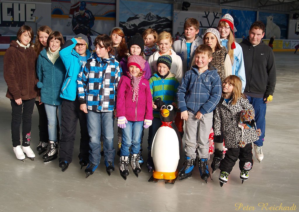 Zum Gruppenfoto trafen sich die Ferienfreizeit-Kinder auf dem Eisoval der Eissportfläche Greiz.
