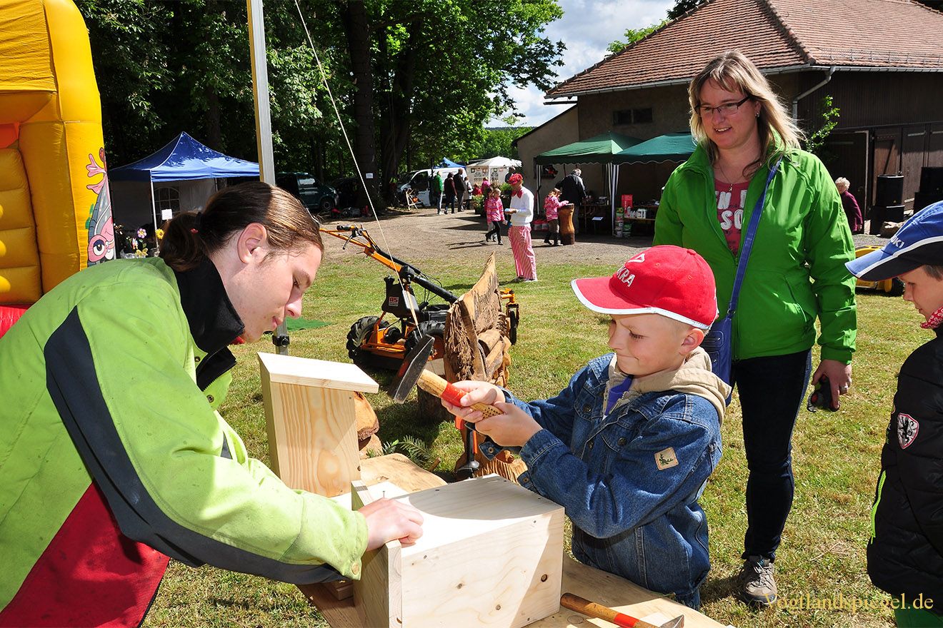 Viel Freude hat Paul beim Bau eines Vogelhäuschens.