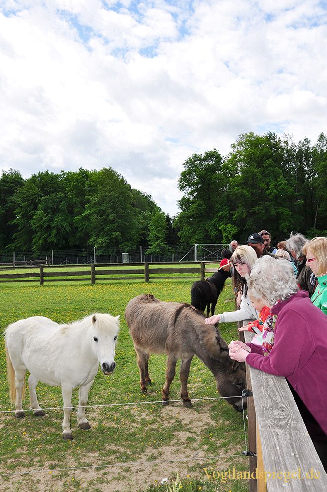 Die Tiere lassen sich von den Tiergehege-Besuchern streicheln.