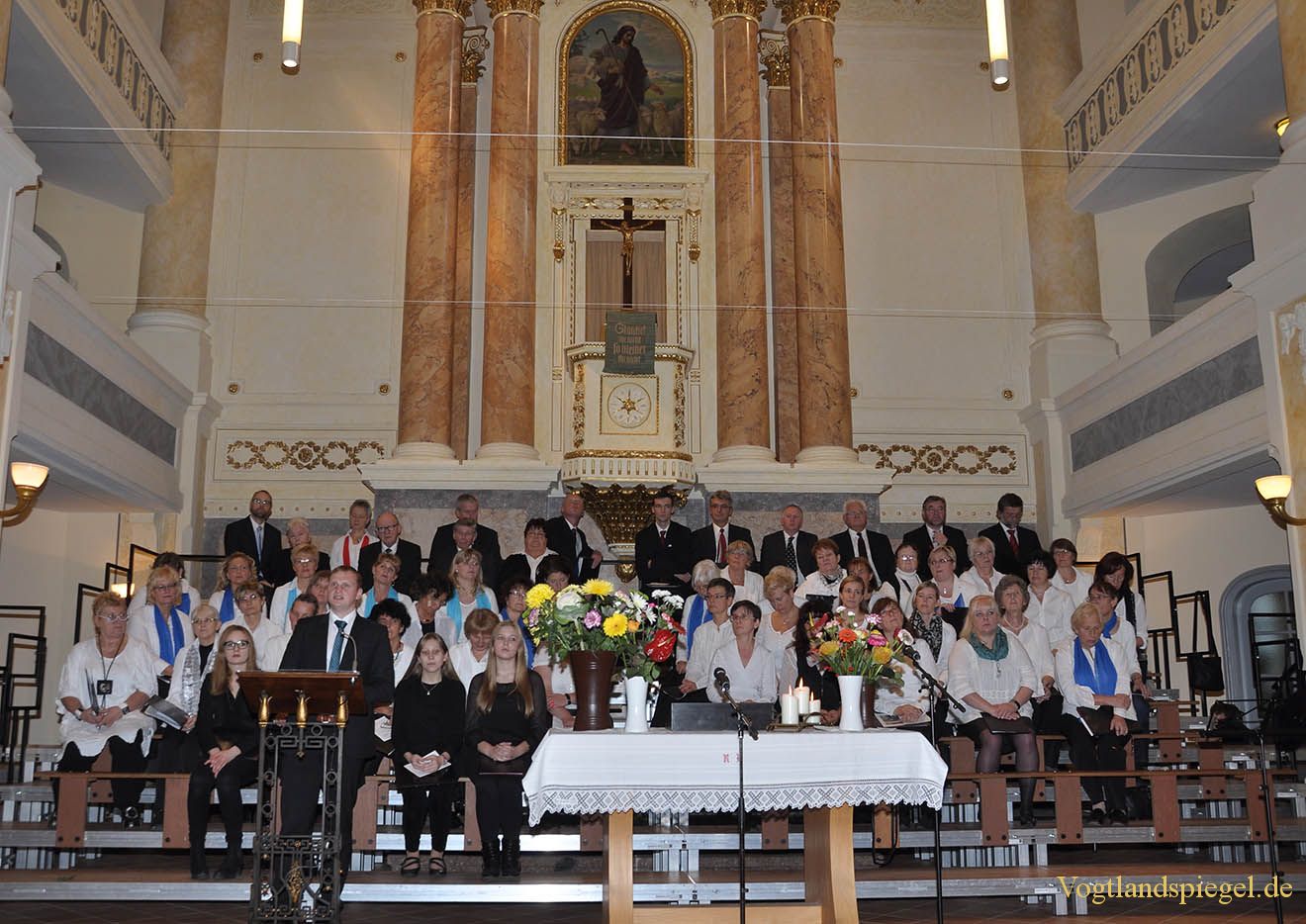 Der Kantatenchor, der Kinder-und Jugendchor an St. Marien sowie das Instrumentalensemble unter Leitung von Kantor Ralf Stiller gestalteten gemeinsam den musikalischen Gottesdienst zum 50-jährigen Bestehens des Greizer Kanatatenchores.