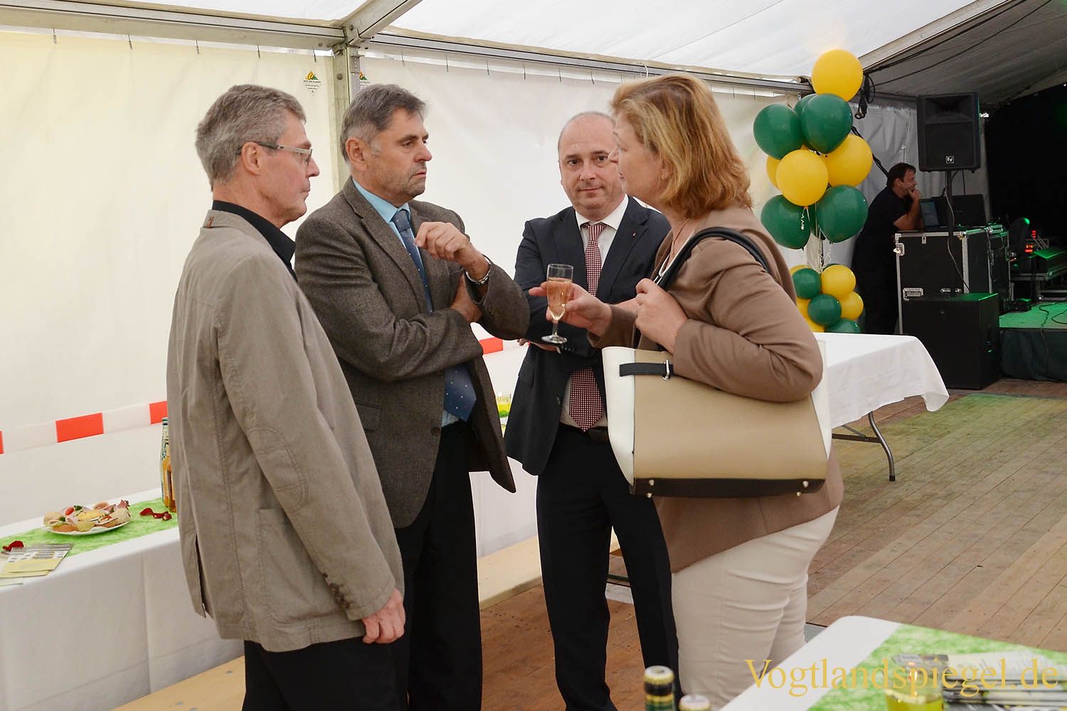 Landrätin Martina Schweinsburg im Gespräch mit Dr. Andreas Hemmann (l.), Gerd Grüner (2.v.l.) und Markus Morbach.