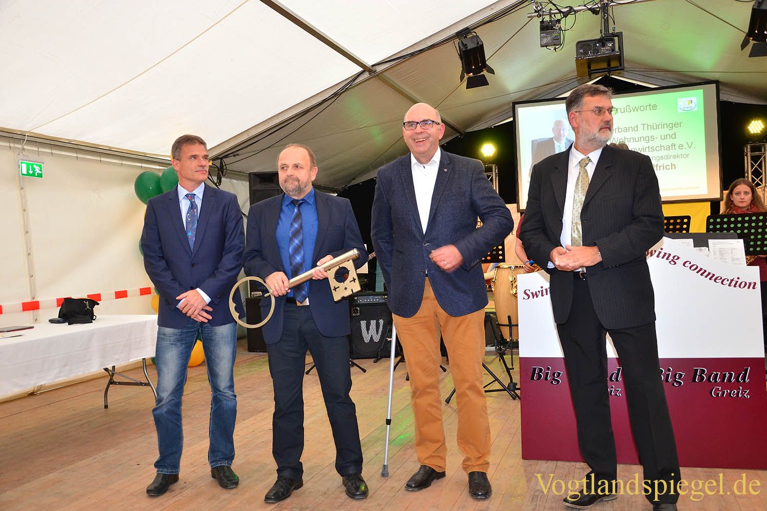 v.l. Steffen Dinkler, Frank Schubert, Uwe Schneider und Matthias Erdmann zur Schlüsselübergabe.