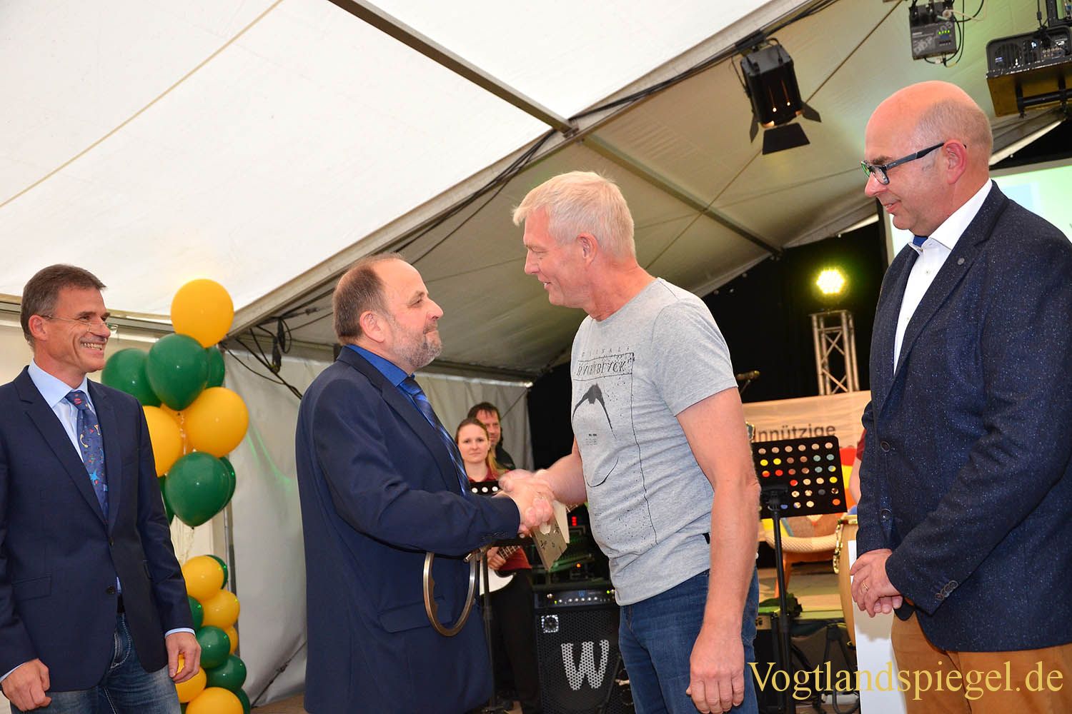 Jens Pense (2.v.r.) nimmt symbolisch für alle Mieter den Schlüssel entgegen.
