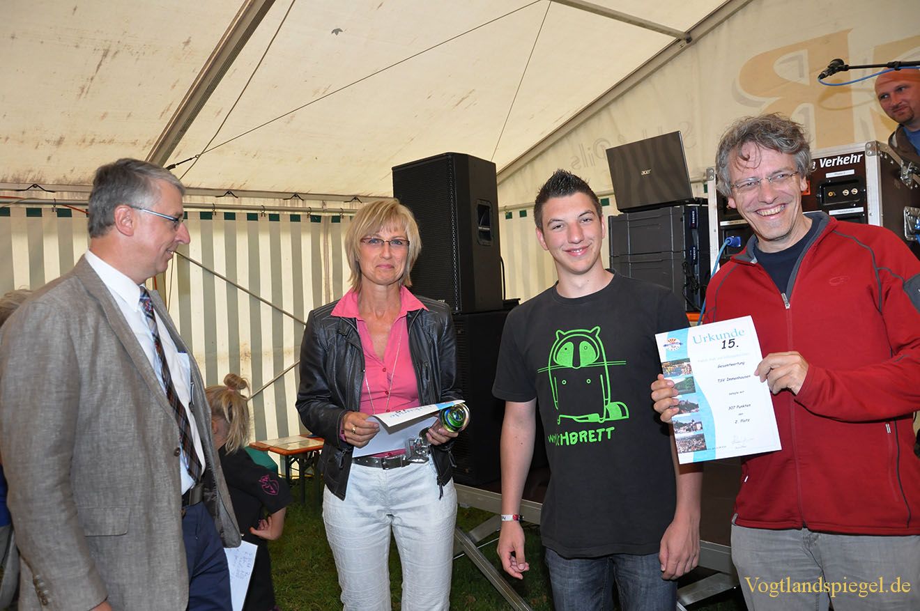 Der TSV Immenhausen (re. Peter Tillmann) erhält von Ines Watzek und Detlef Zietan (l.) eine Urkunde für den 2. Platz beim Kampf um den Pokal des Greizer Bürgermeisters.