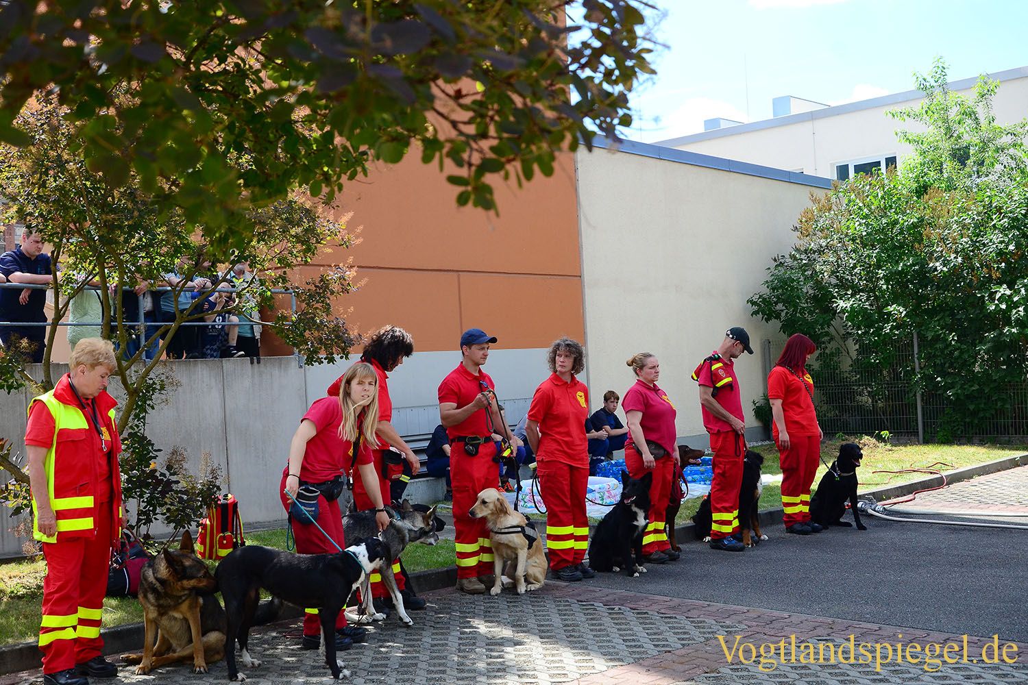 Die Rettungshundestaffel des ASB bereitet ihre Darbietung vor.