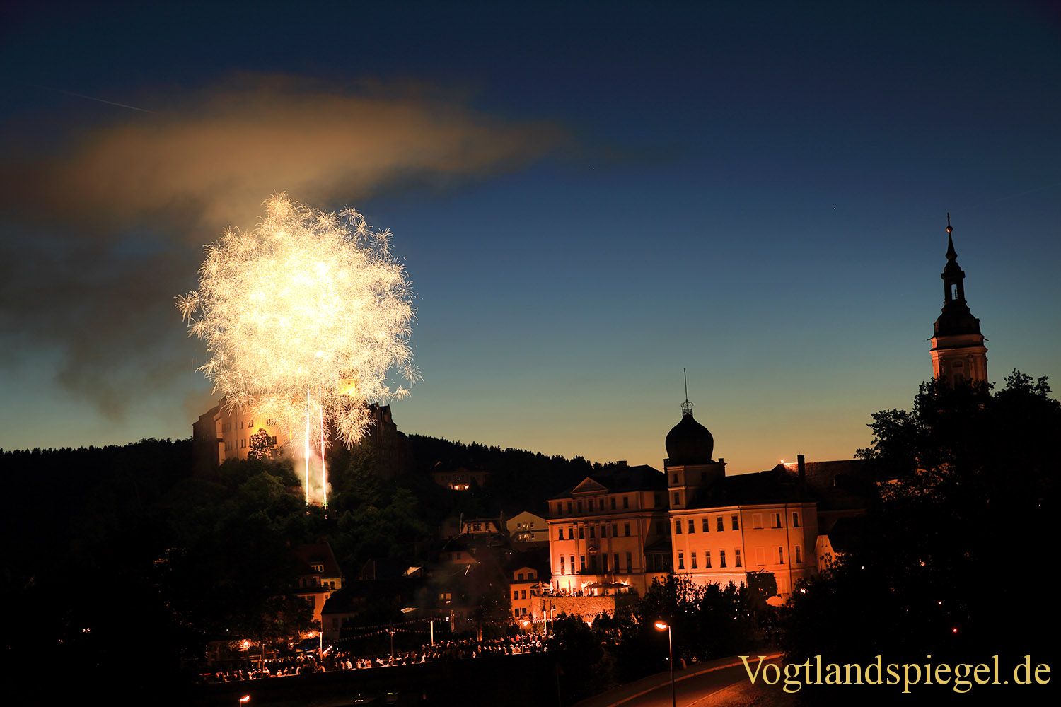 Feuerwerk erleuchtet Himmel über Greiz