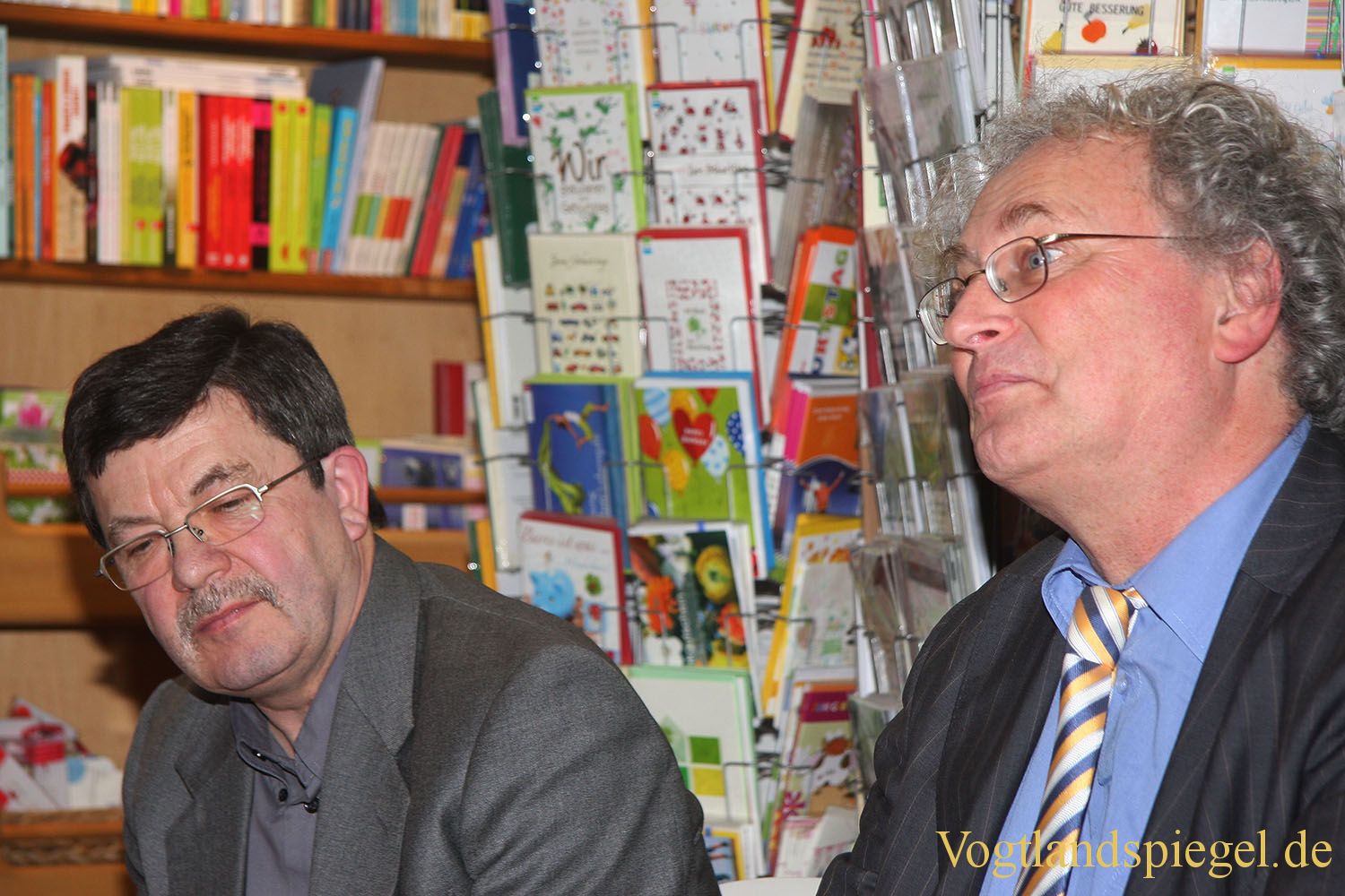 Friedhelm Berger (r.), Verleger des UND-Verlages und Autor Volker Müller