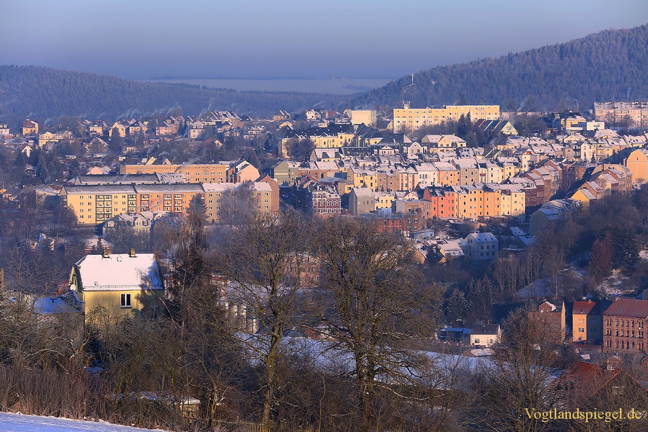Winterlicher Blick auf die Stadt Greiz. Aufnahme von Ende Januar 2016.