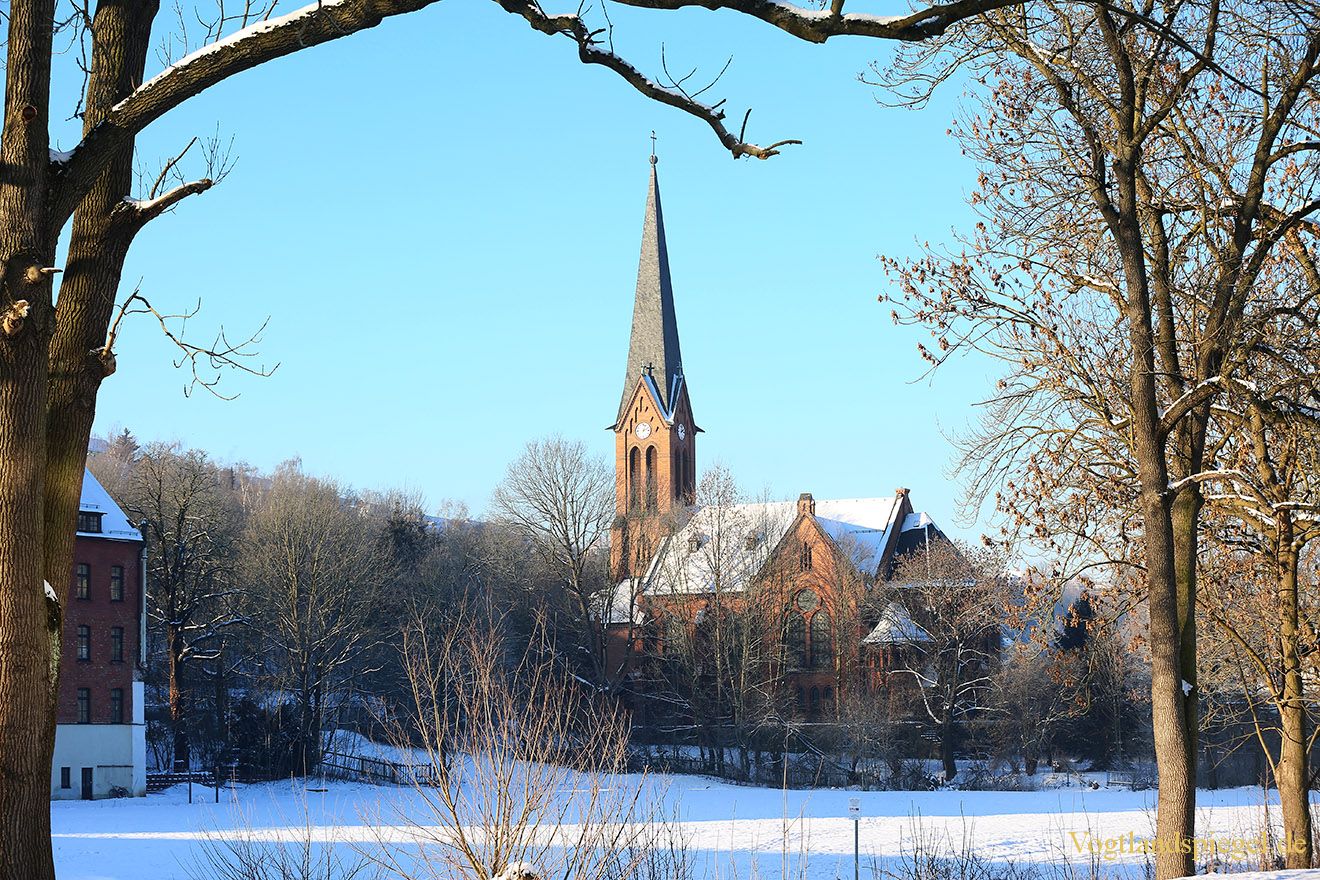 Die Aubachtaler Kirche zeigt sich im Winterkleid. Aufnahme von Ende Januar 2016.