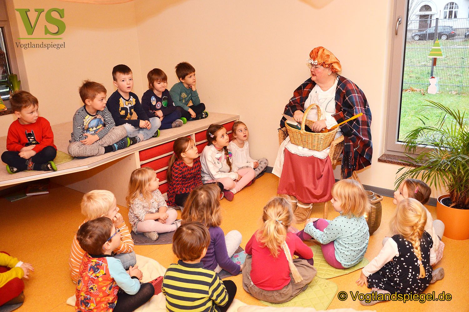 Mit großen Ohren und großen Augen lauschen die Kinder der Geschichte.
