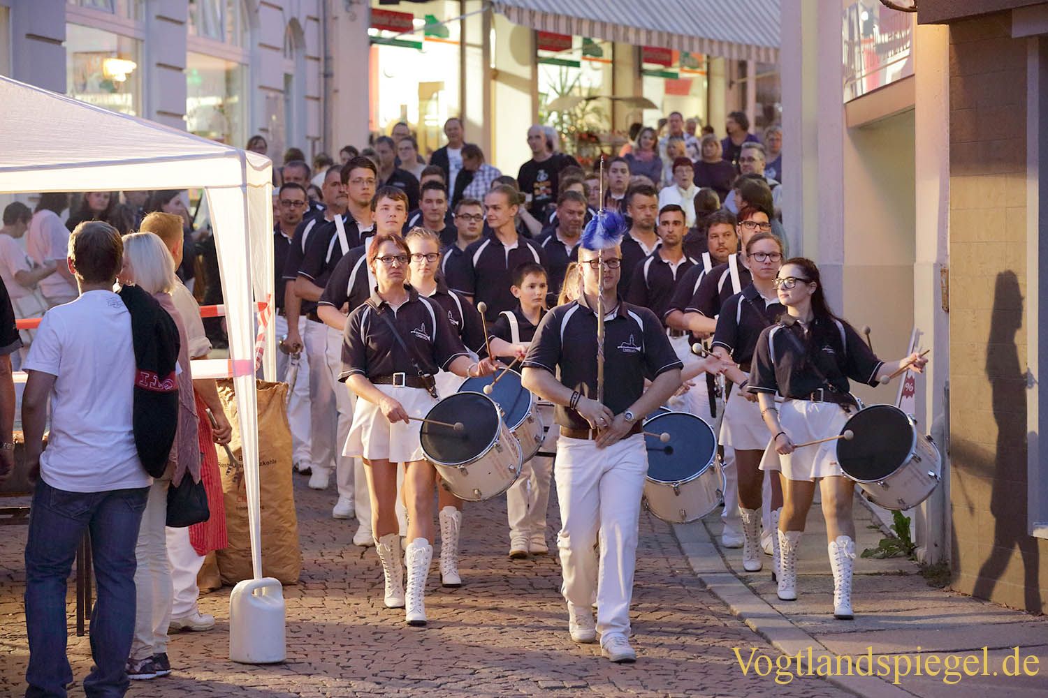 Der Greizer Fanfarenzug kommt mit schmissigen Klängen zu den Gästen.