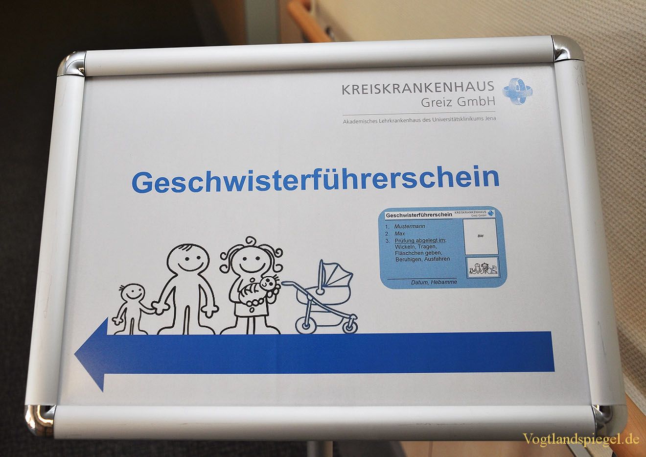 Der Aufsteller weist den Weg zum Geschwisterführerschein.