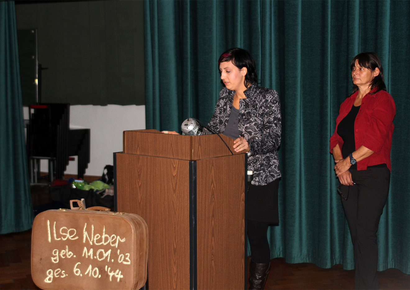 Melanie Keßler (l.) und Steffi Drese zur Eröffnung der Ausstellung „Erinnern an die Gegenwart.“