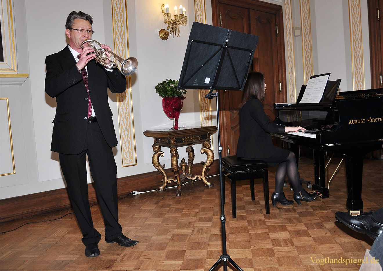 Matthias Härtig (Trompete) und Anita Rott (Klavier) umrahmen die Ausstellungseröffnung musikalisch.