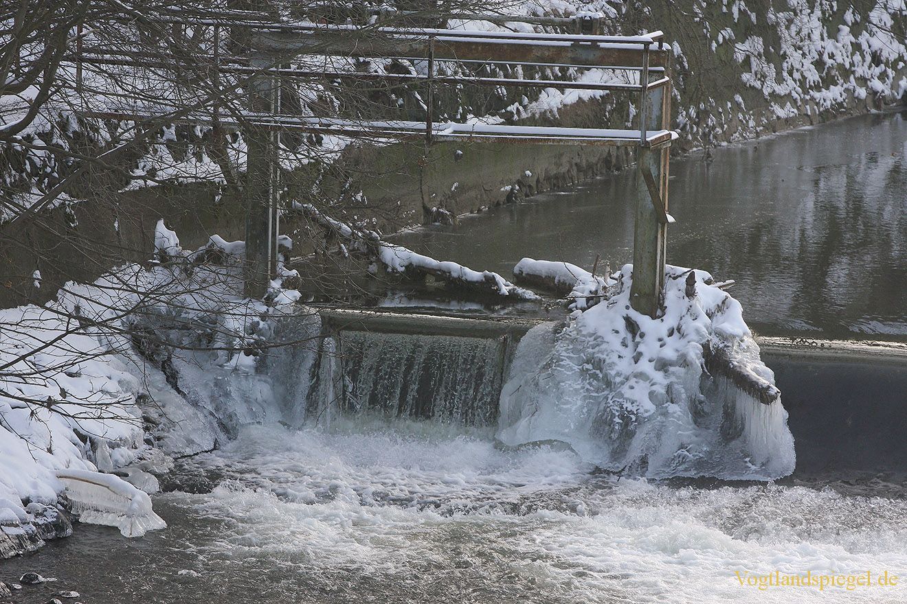 Das Wehr der Weißen Elster in Rothenthal. Aufnahme von Ende Januar 2013.