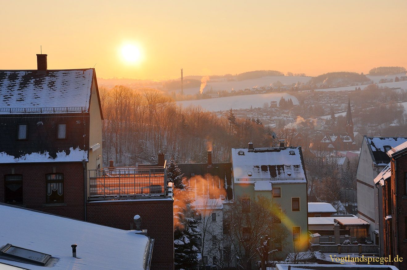 Morgenblick mit schönem Sonnenaufgang in Richtung Irchwitz. Aufnahme vom 11. Februar 2013.