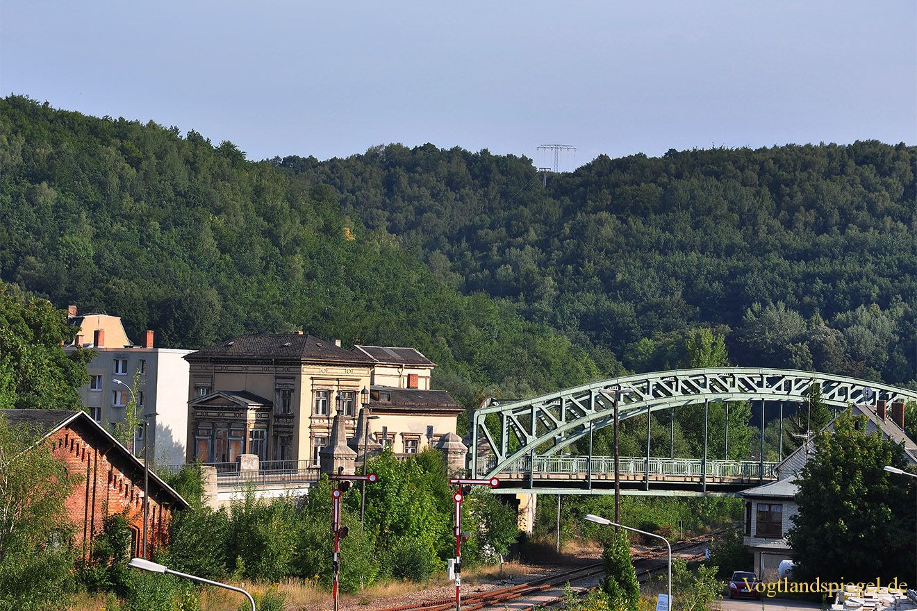 Blick auf die Tannendorfbrücke und die Nahmmachersche Villa. Aufnahme von Ende August 2013.