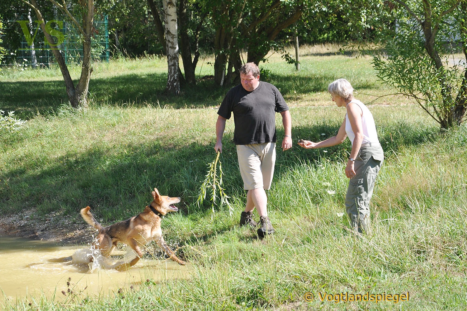 Steffen Poppe hat Burnout. Seine Liebe gehört einem Hund im Sachswitzer Tierheim, der es im Leben auch nicht leicht hatte. Auch mit Sabine Wonitzki spielt der Rüde gern.