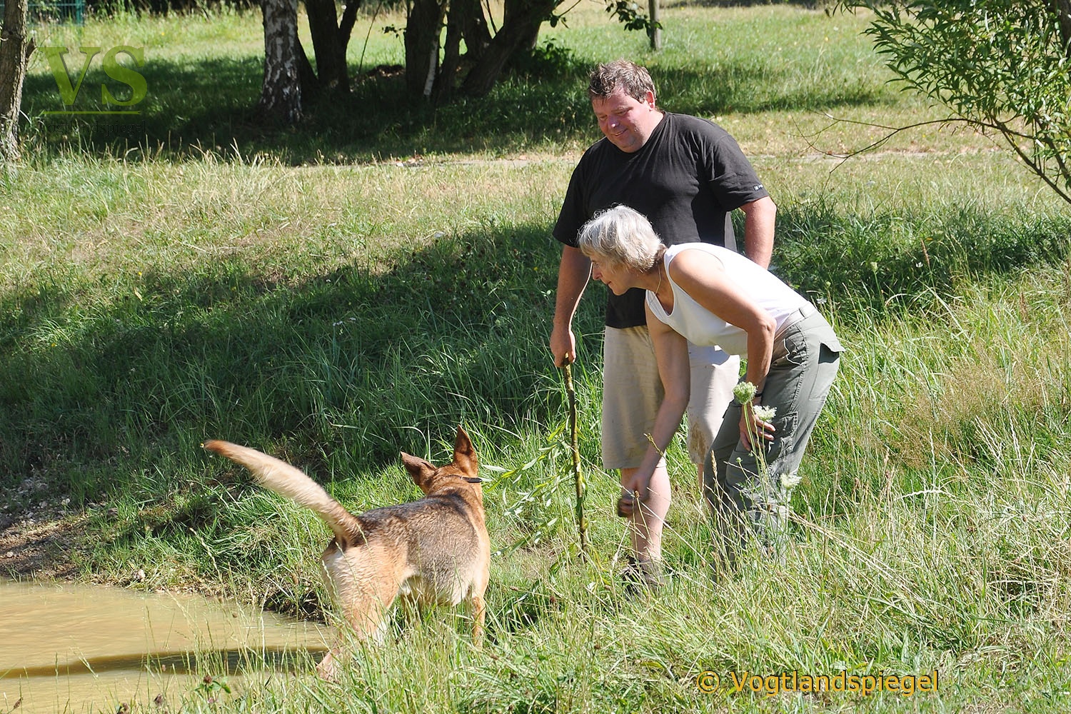 Steffen Poppe hat Burnout. Seine Liebe gehört einem Hund im Sachswitzer Tierheim, der es im Leben auch nicht leicht hatte. Sabine Wonitzki freut sich, dass Louis Fortschritte macht.